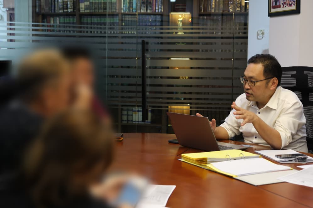 一对年迈夫妇今日前来砂行动党国州议员张健仁律师事务所,向其...
