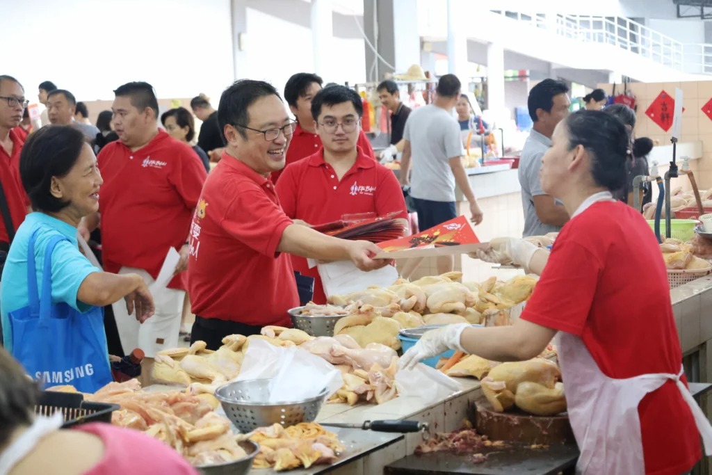 张健仁昨日率团队走访史都东菜市场,推销《火箭报》及分发新春门贴与红包封时,接获民众...